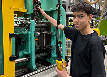 Ich durfte direkt an den Kunststoffspritzmaschinen arbeiten – mein Betreuer stand mir bei allen Fragen zur Seite. Ich habe Werkzeuge in die großen Kunststoffspritzmaschinen eingebaut, die Temperierung angeschlossen, Granulat-Trichter gereinigt und Fahrbewegungen ausgeübt. Letzteres hat mich begeistert, da ich direkt sehen konnte, dass sich etwas an der großen Maschine bewegt, wenn ich etwas eingestellt habe.