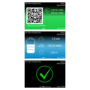 Nutzerinnen und Nutzer erhalten rund um den Ladevorgang stets klare Instruktionen und Informationen. Zudem sind die dynamischen QR-Codes für die Autorisierung ein Plus an Sicherheit, da sie besser vor Manipulation durch Dritte schützen als statische QR-Aufkleber.