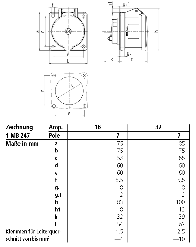 mit Zubehör, unter Verwendung des dazugehörigen Flansches geeignet für die Aufnahme einer Anbausteckdose 16 A bzw. 32 A der Artikelgruppen 1046, 1056, 1134 und 1136